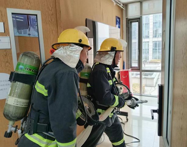 下午4时整,新主楼E座804房间模拟发生火情,新主楼物业中控室的消防主机突然接收到了E座8层的手动报警按钮的报警信号,中控室马上通知距离最近的巡视人员跑点核实,发现E座8层804房间烟雾较大,巡视员立即向中控室报告请求微型消防站支援,中控室通知微型消防站出动进行模拟初期火灾扑救,并模拟拨打“119”报警。鉴于火势蔓延较快,为保障楼内人员的安全,决定对E座1至11层的全部人员进行紧急疏散。