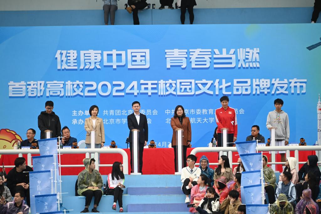 4月28日,“健康中国·青春当燃”首都高校2024年校园文化品牌发布仪式在我校体育场举办。发布仪式上,北京团市委、北京市委教育工委等单位负责同志共同发布“健康中国·青春当燃”首都高校2024年校园文化品牌,来自58所在京高校的800名师生一同见证这一历史时刻。